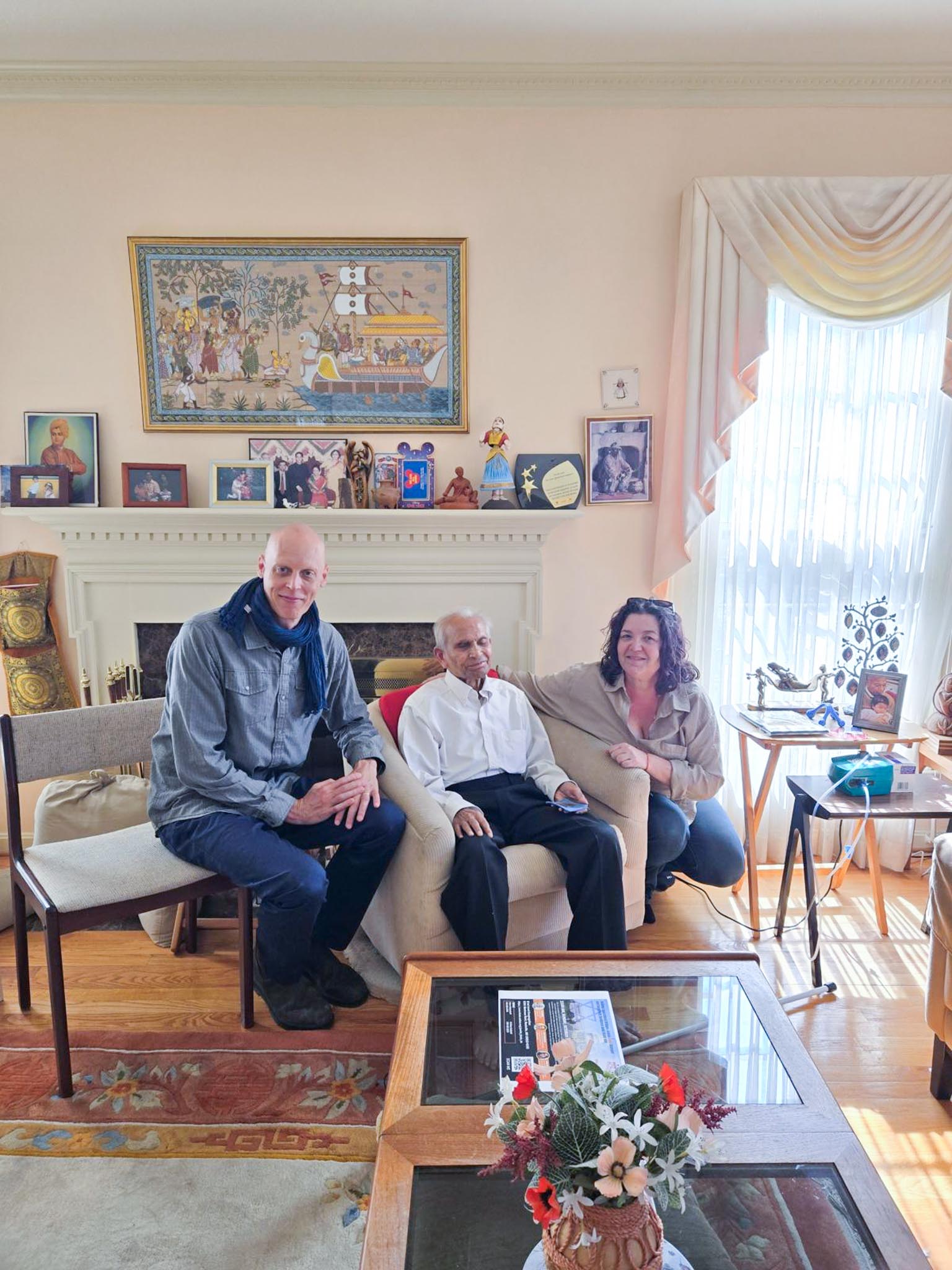 A highlight of the visit was meeting Dr. Vinod Prakash, IDRF’s founder. Now 93 and visually impaired, Dr. Prakash has devoted his life to empowering marginalized communities. Binah and Matthew presented him with a Matrimandir tile, evoking memories of his first visits to Auroville and his sister’s volunteer work at Udavi School. He was deeply moved by the gift, which celebrated both his personal connection to Auroville and his lifelong dedication to service. The team also met his son, Gautam, and several IDRF leaders, further strengthening AVI USA’s ties with the organization.
