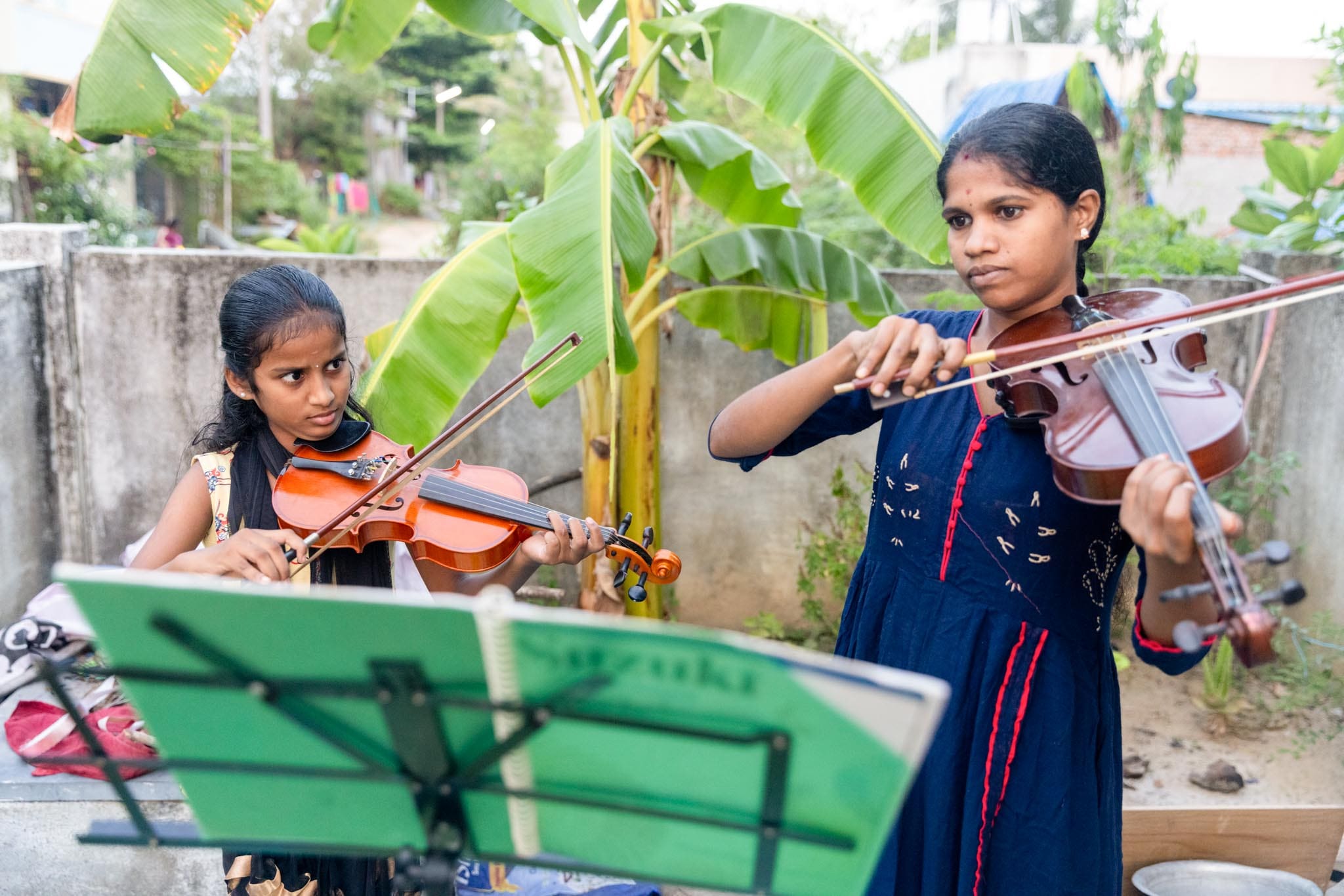 Jerolin, an orphan, astonished everyone with her musical gifts. Without formal training, she could play complex pieces by Bach and Beethoven entirely by ear. At Isai Ragam, her talent was nurtured, and today she studies both piano and violin at a high level while living in housing provided by the program.